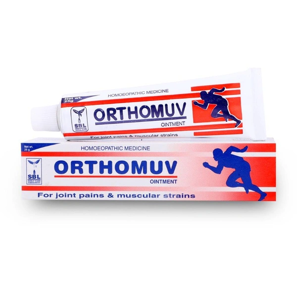 SBL Orthomuv Ointment is designed to relieve various pain and discomfort in joints, muscles, and the back. It can assist with issues like sports injuries, stiffness, and bruising that causes skin discoloration.